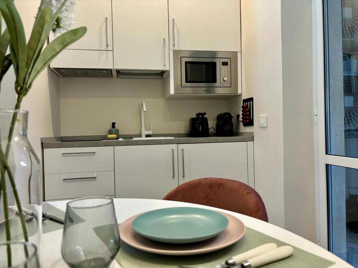 Two-Bedroom Apartment. Boasting a private entrance, this air-conditioned apartment includes 1 living room, 2 separate bedrooms and 1 bathroom with a shower and a bidet. In the well-fitted kitchen, guests will find a stovetop, a refrigerator, kitchenware and a microwave. The spacious apartment offers a flat-screen TV with streaming services, a washing machine, a tea and coffee maker, a seating area as well as city views. The unit has 3 beds.